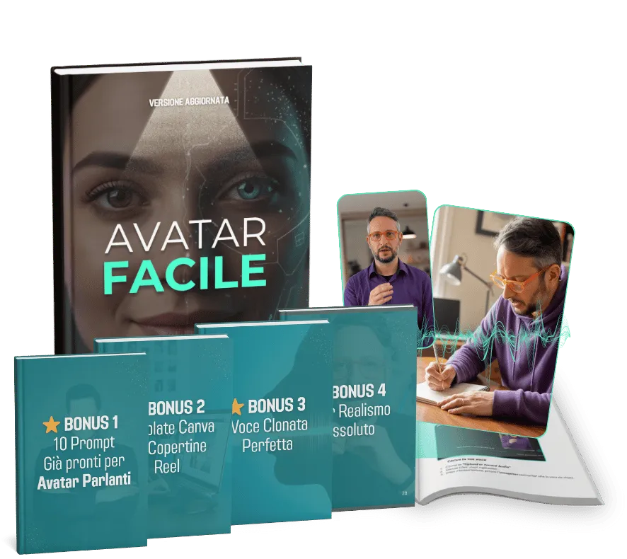 Clicca sul pulsante "Crea il tuo Avatar AI" inserisci i tuoi dati e quelli relativi al metodo di pagamento e subito dopo aver effettuato l'acquisto, riceverai una mail con all'interno il Manuale in PDF. Facilissimo!